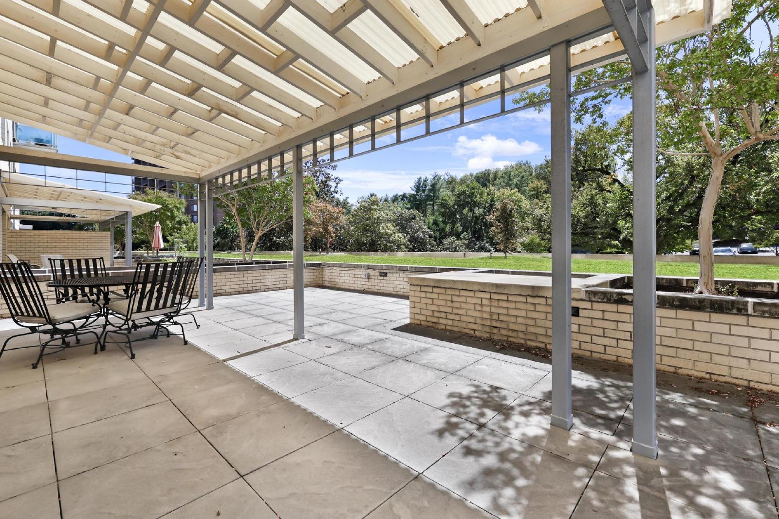Cannot beat the location in town or the building. Exclusive, private ground floor covered patio! Beautiful studio apartment minutes from the Grosvenor Metro. Afternoon sun shines through the large windows and sliding patio door making unit light and bright. Renovated cabinetry throughout, granite counters, stainless steel appliances: Viking gas range, built in microwave, dishwasher, fridge. Private changing room/closet outside the bathroom. Freshly refinished wood floors, massive storage closet and tuck-away desk/office space. Building amenities: 24 hour front desk, pool, walking path, fitness room, complex has on site grocery store, & roof top terrace. Plenty of Parking too!!! NIH & downtown Bethesda are only a few Metro stops away.